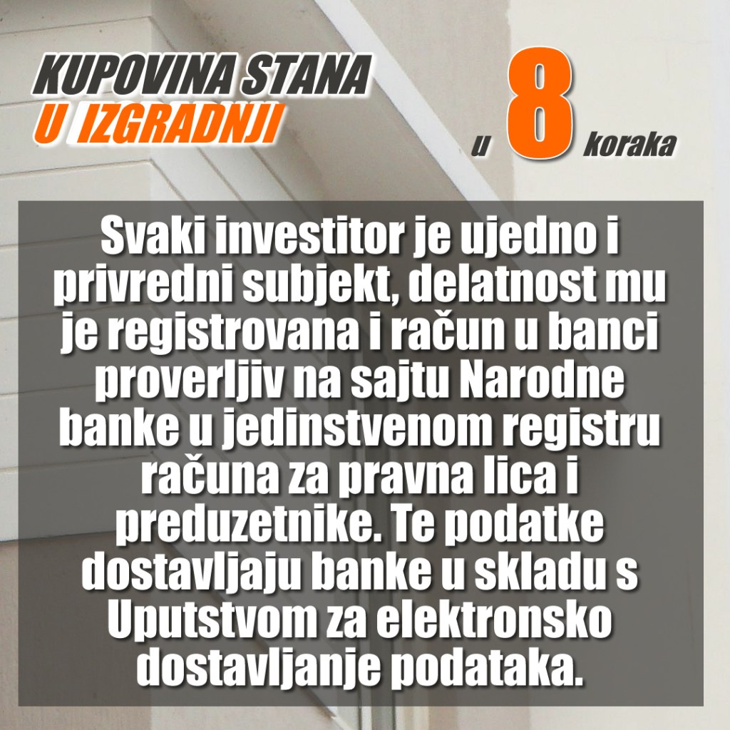 1. Da li je investitor upisan u registar privrednih subjekata Agencije za privredne registre i je li račun u blokadi na veb stranici Narodne banke;